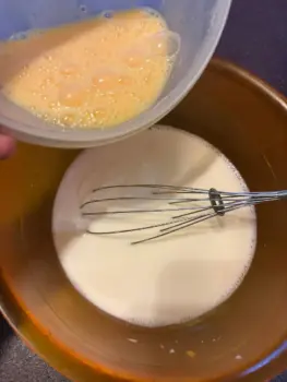 - Добавить взбитые отдельно яйца, хорошо смешать венчиком.
