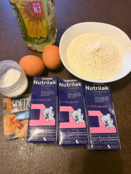 - Смесь на основе коровьего молока (базовая смесь с номером 1 или 2) — 600 мл Высокогидролизованные лечебные и антирефлюксные смеси при этом не подойдут (горчат). Если смесь жидкая, как на фото, то берем 3 пачки по 200 мл. Если сухая, то разводим водой по инструкции до объема 600 мл.